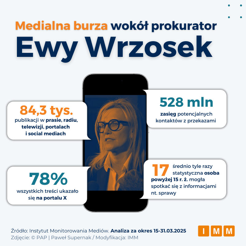 Ciekawe też jest to, że okresie od 15 do 31 marca profil Ewy Wrzosek na platformie X (dawniej Twitter) zyskał 2,6 tys. nowych obserwujących, a jej wpisy zostały wyświetlone 6,4 mln razy, generując ponad 182 tys. interakcji. To pokazuje, jak silnie emocjonalnie reaguje społeczność internetowa – zarówno pozytywnie, jak i negatywnie – na osoby stające się twarzami medialnych i politycznych sporów – podkreśla Monika Ezman.
