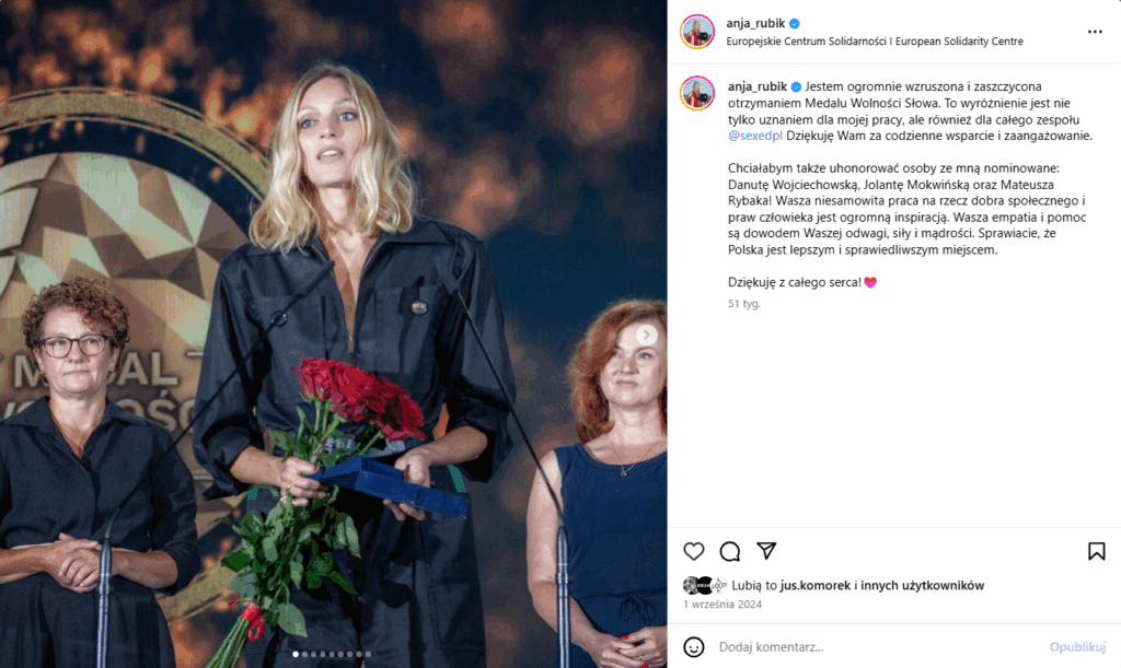 Źródło: https://www.instagram.com/anja_rubik/p/C_YdPb7N804/?hl=pl
