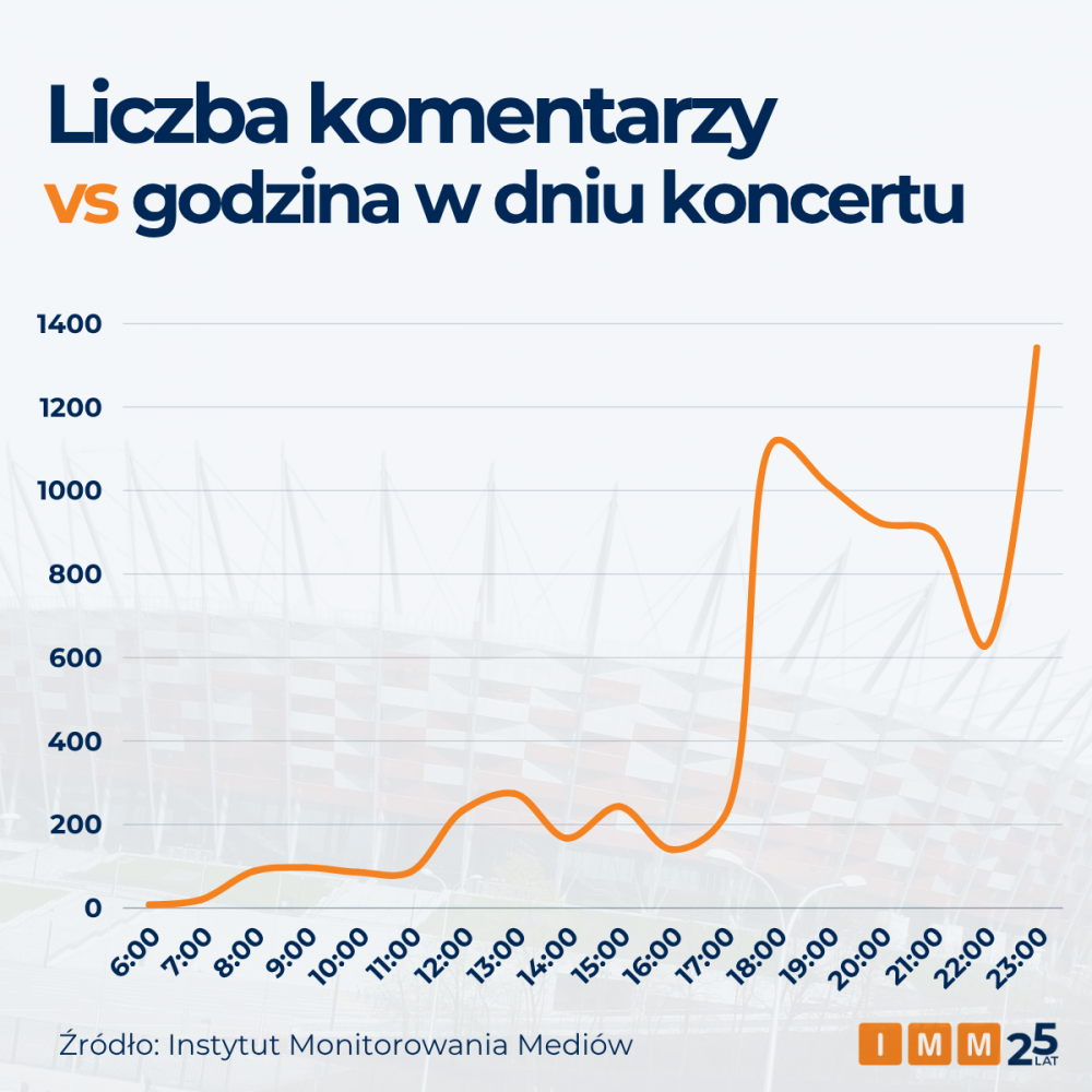 Dane z mediów społecznościowych na temat wszystkich wydarzeń muzycznych, które odbyły się na PGE Narodowym w Warszawie do końca lipca 2025 roku. W przypadku każdego występu analizowano dzień poprzedzający, dzień wydarzenia oraz dzień po.