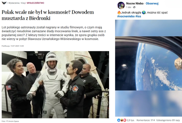 Choć wśród użytkowników social mediów dominowały komentarze pozytywne, nie brakowało głosów podważających autentyczność misji. Pod filmami Uznańskiego-Wiśniewskiego – szczególnie na TikToku – pojawiały się stwierdzenia, że „to wszystko nagrane w studiu” albo „Ziemia jest płaska”. Do wątku szerzenia fake newsów odnosiły się także mainstreamowe redakcje i wysokozasięgowe kanały o tematyce popularnonaukowej: