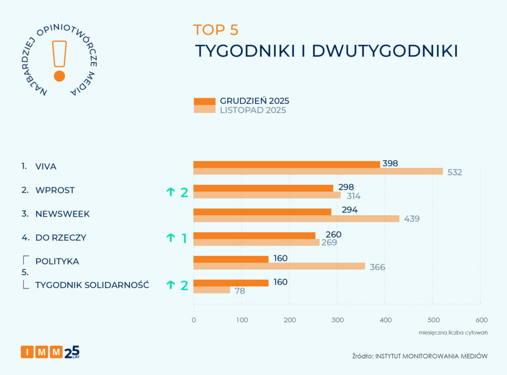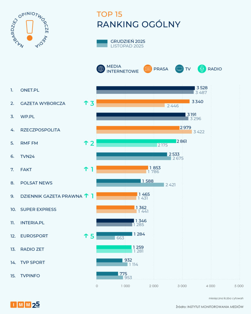 TOP 15 najbardziej opiniotwórczych mediów grudnia