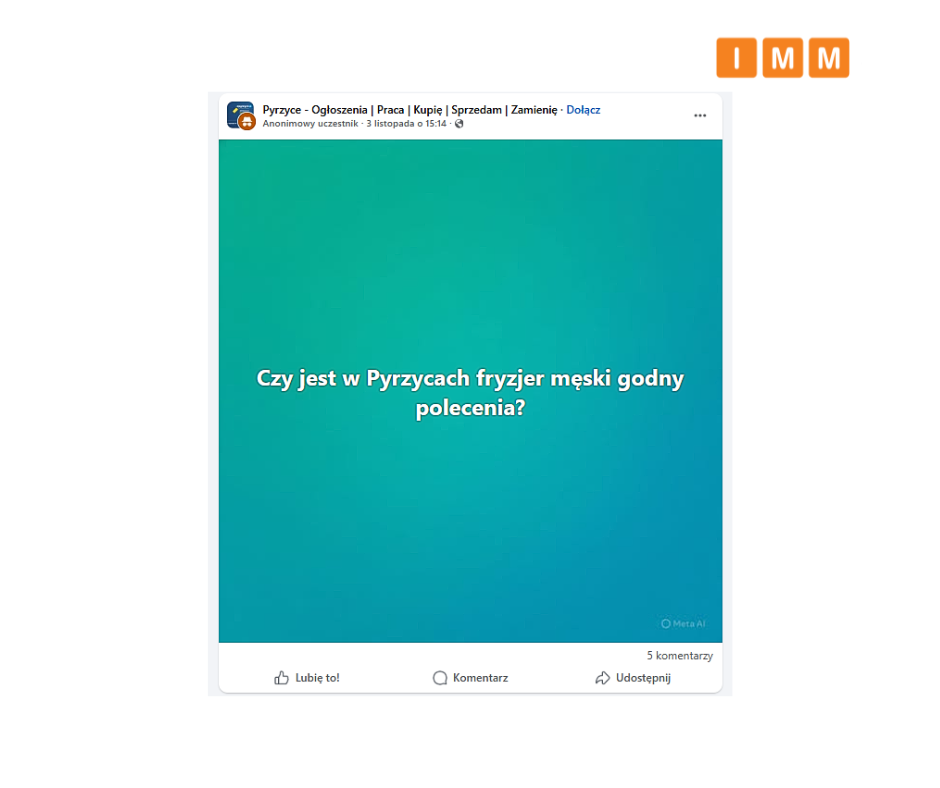 W wynikach monitoringu mediów społecznościowych pojawia się pytanie związane z naszą branżą – np. ktoś szuka fryzjera w Pyrzycach: