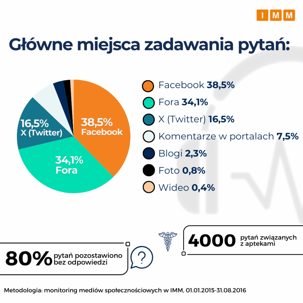W przypadku niektórych sektorów social listening może okazać się jedyną drogą skutecznych działań marketingowych. Wystarczy przyjrzeć się bliżej branży farmaceutycznej, która w dziedzinie promocji obostrzona jest licznymi przepisami prawnymi. IMM przygotował w raport na temat aktywności aptek w mediach społecznościowych, z którego wynika, że 80% okazji do kontaktu z klientem pozostaje bez odzewu.
