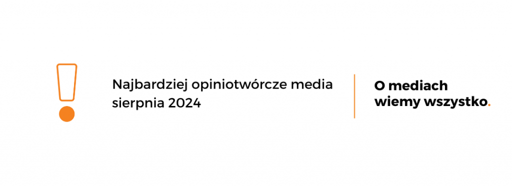 Największy udział w sierpniowym zestawieniu TOP 15 najbardziej opiniotwórczych mediów w Polsce – po 33% – odnotowały ex aequo prasa (Rzeczpospolita, Gazeta Wyborcza, Fakt, Dziennik Gazeta Prawna, Super Express) oraz telewizja (TVN24, Polsat News, TVP Sport, Eurosport, TVP Info). Jedna piąta udziału przypadła mediom internetowym (Onet, Wirtualna Polska, Interia). Najmniejszy udział – 13% – mają stacje radiowe (RMF FM, Radio ZET).