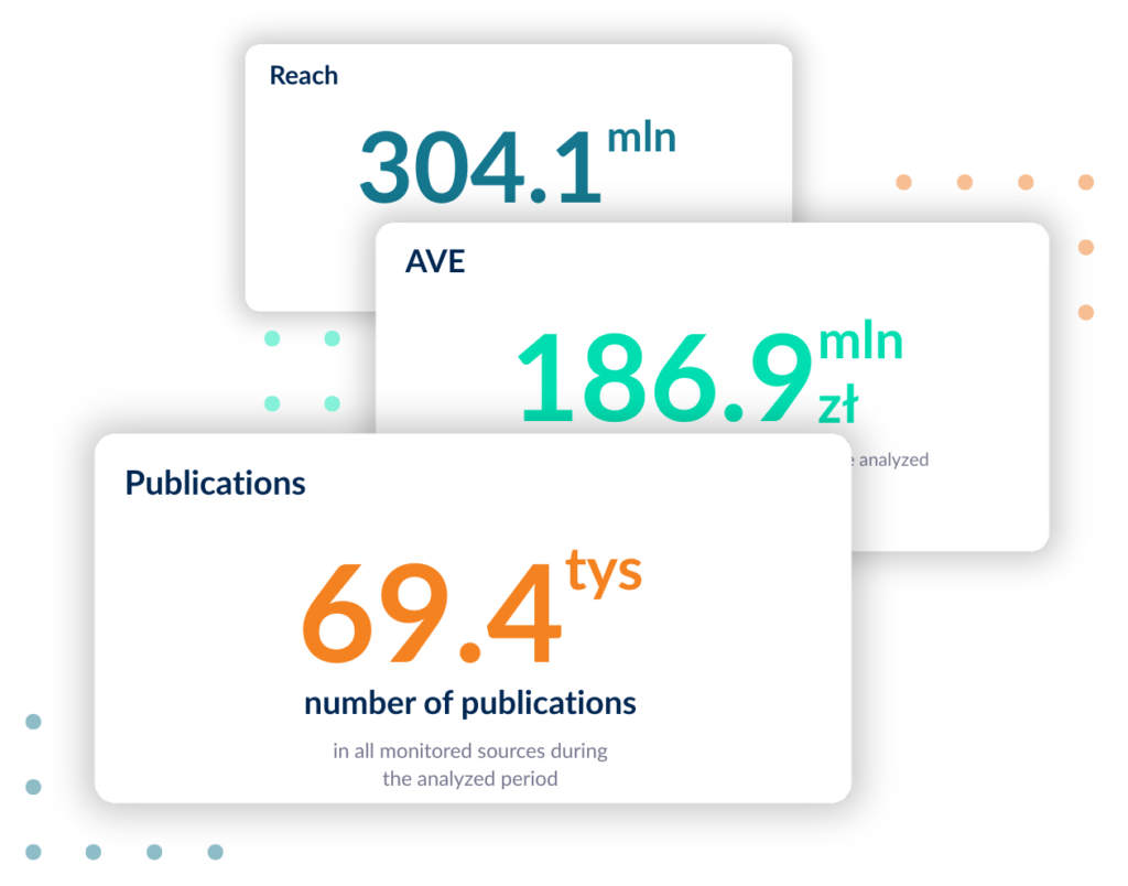 In IMM reports you will find numerous inspirations for communication, you will check the position in media, plan promotional activities and identify your customers needs. Reliable reports are compiled based on numerous indices (e.g. overtone, reach, advertising value equivalent, social media engagement), and they are developed by a team of specialists.