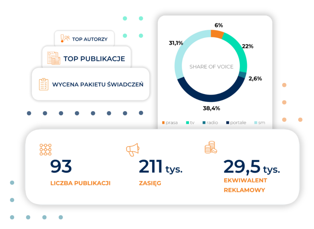 Wartościowe dane z monitoringu wszystkich mediów to dopiero początek. W IMM zmieniamy je w strategiczne informacje. Nasze badania oceniają medialną siłę marek oraz projektów. W przejrzystych raportach prezentujemy wartościowe dane potwierdzające efektywność prowadzonych działań promocyjnych w otoczeniu konkurencyjnym. Na podstawie wyników z monitoringu social media wskazujemy insighty oraz analizujemy emocje skupione wokół marek. Dzięki kompleksowej analizie przekazów możesz precyzyjnie wybrać projekty, które przynoszą najwięcej korzyści dla Twojej firmy.